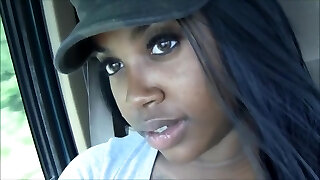 07:30Plump ebony bitch Dark-skinned Sugar rubs her puss while driving car